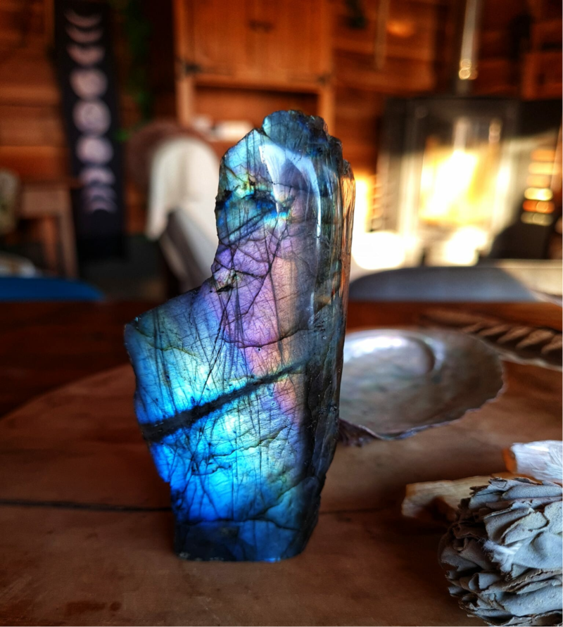 Labradoriet helpt je in je eigen kracht te staan en leert je voor jezelf op te komen. De steen maakt creatief en flexibel en geeft inzicht en overzicht.