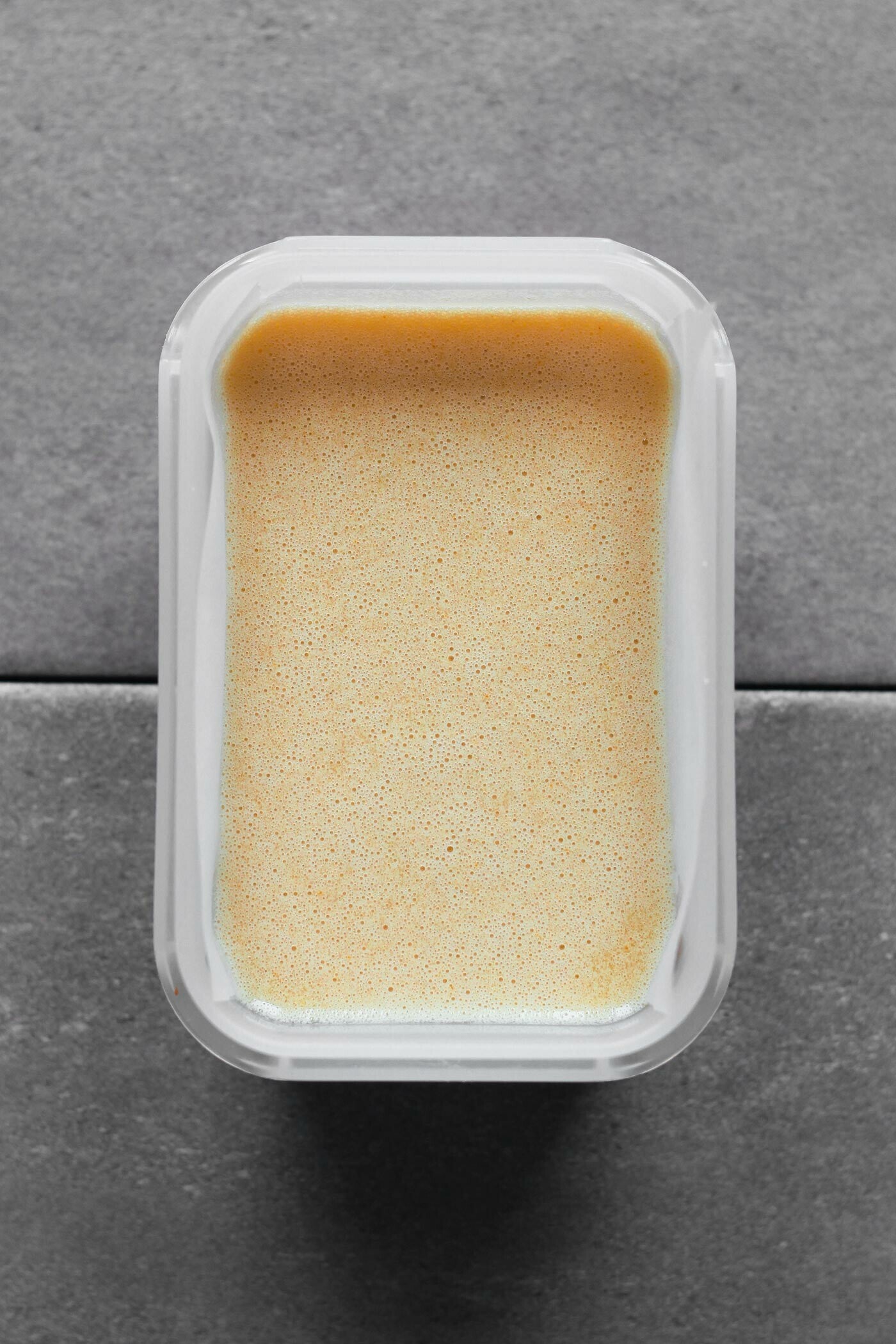 - Breng over naar een kleine kom en roer de eventuele Acidophilus erdoor. Dek af met een schone handdoek en laat minimaal 24 uur op kamertemperatuur komen. Je zou wat luchtbellen moeten zien en de smaak is licht zuur.