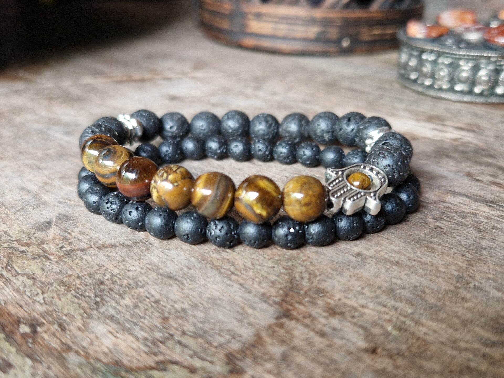 Mooi setje van 2 lavasteen armbandjes. Lavasteen is ook perfect voor aromatherapie. Wrijf je armbandofketting in met je favoriete geur olieen op die manier kan je optimaal genieten van je geurtje...