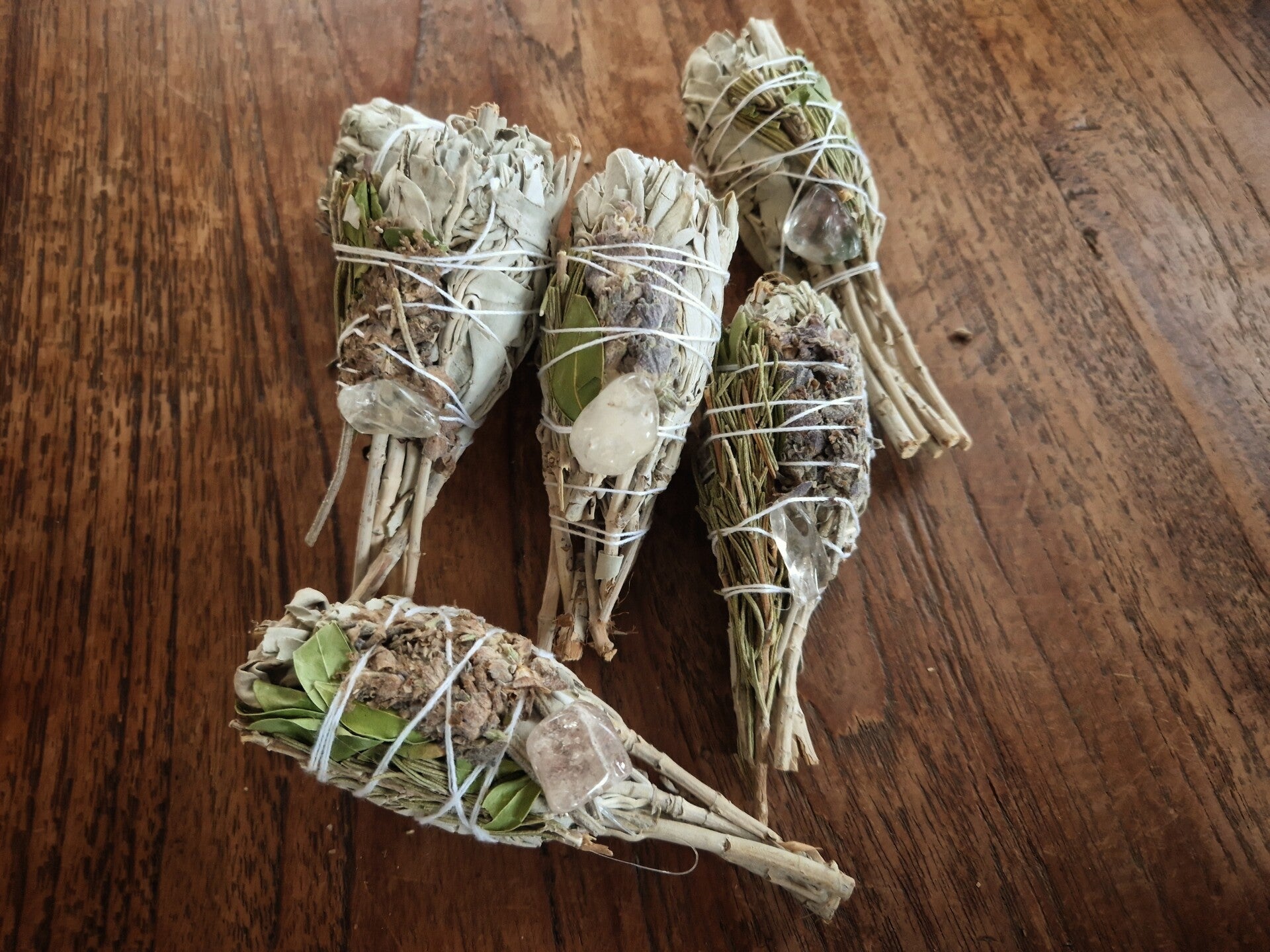 Aura Reinigende witte salie kakkel met kruiden en een citrien edelsteentje.