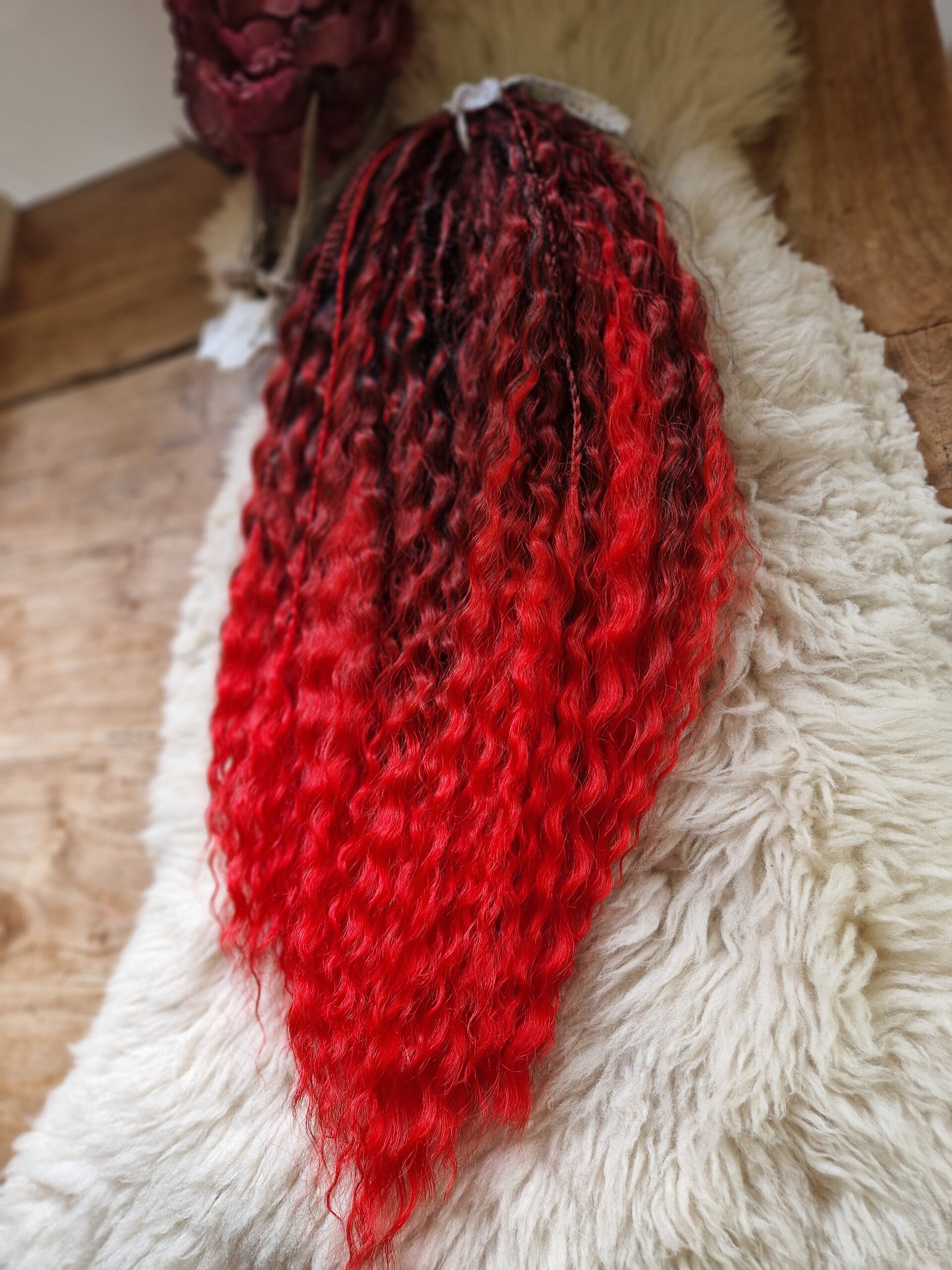 Dubbele curly locks zijn ervoor om in te vlechten voor ern vol hoofd, partials of om je echte dreadlocks mee op te vullen. Ze zijn 55 cm lang...