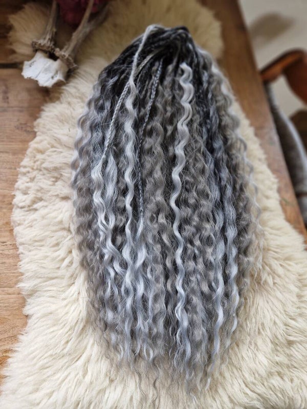Dubbele curly locks zijn ervoor om in te vlechten voor ern vol hoofd, partials of om je echte dreadlocks mee op te vullen. Ze zijn 55 cm lang...