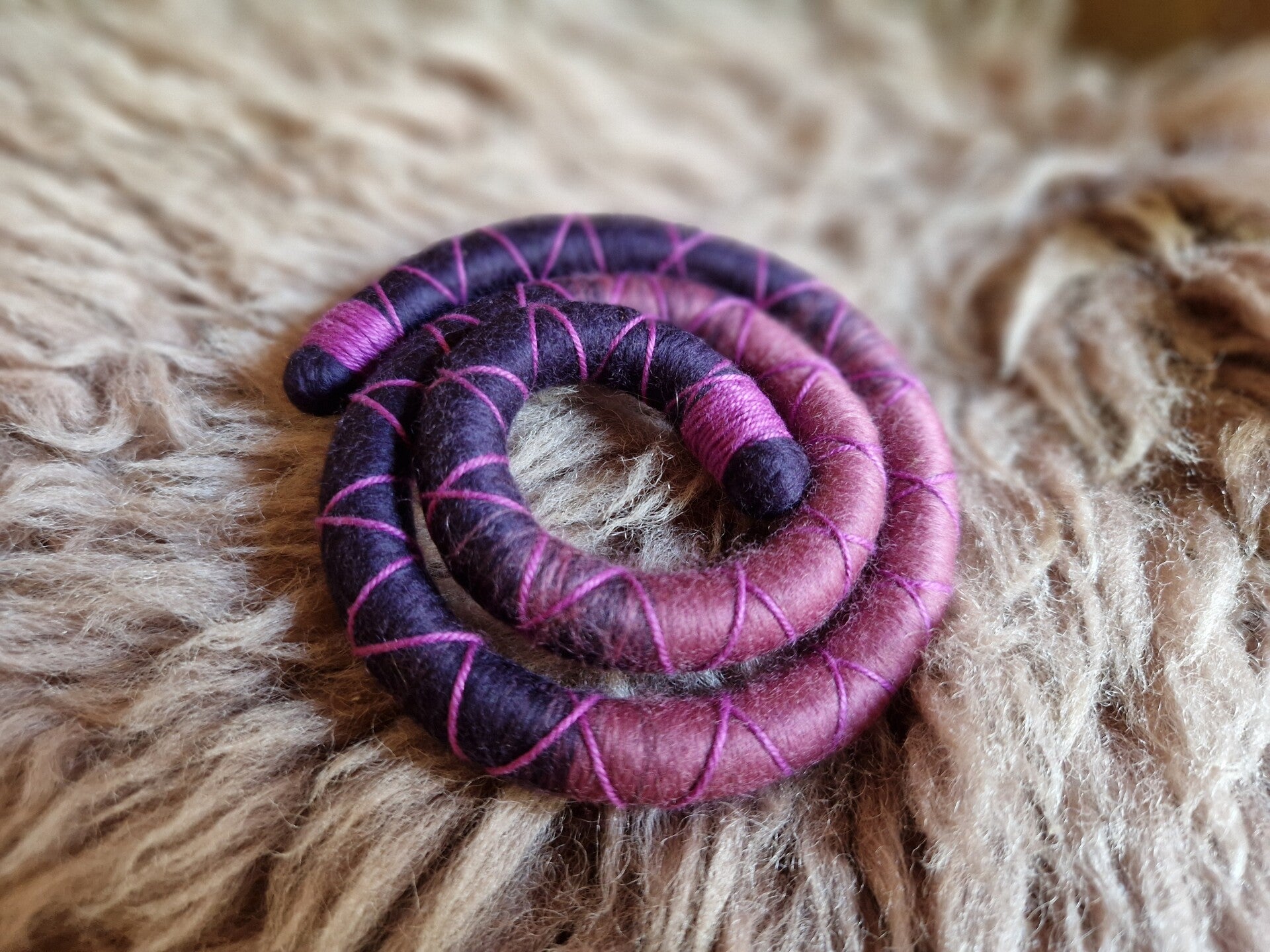 Deze prachtige spiralock is handgemaakt in Portugal met merino wol en sierlijk omwikkeld met mooi draad..