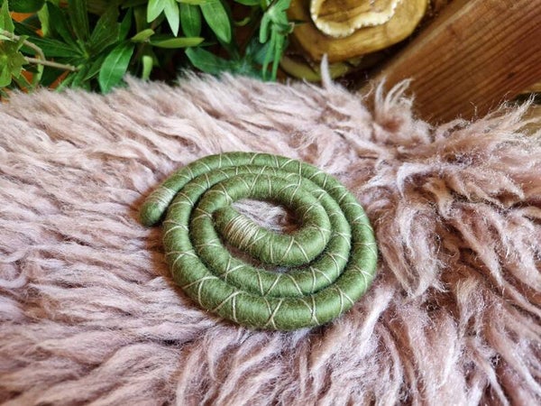 Deze prachtige spiralock is handgemaakt in Portugal met merino wol en sierlijk omwikkeld met mooi draad..