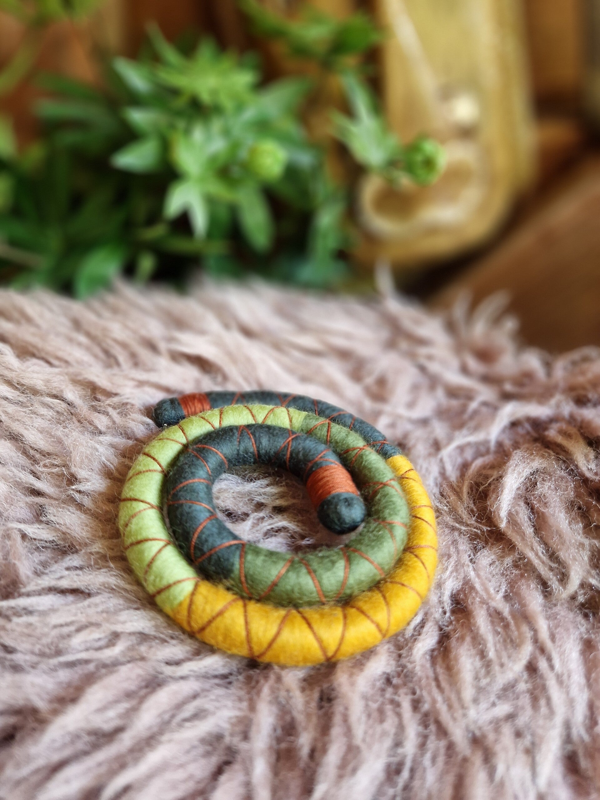 Deze prachtige spiralock is handgemaakt in Portugal met merino wol en sierlijk omwikkeld met mooi draad..