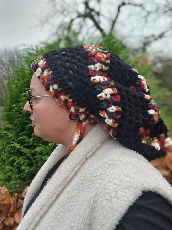 Deze Dreadmuts is lekker groot en heeft fijne trekkoortjes om de muts wat strakker te kunnen zetten...