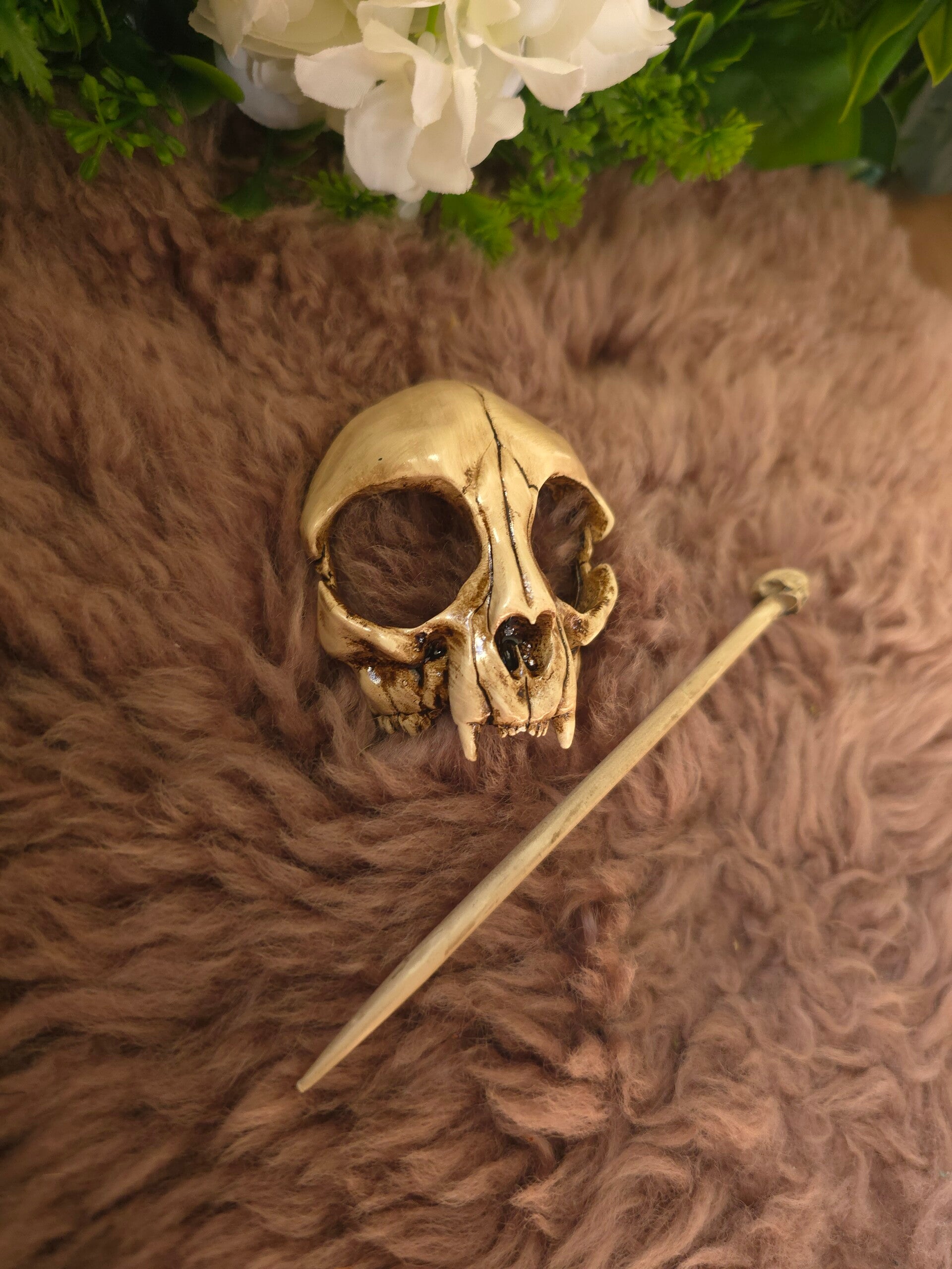 Super schattige kattenschedel haarpin voor de wat dunnere dreads of voor in normaal haar.