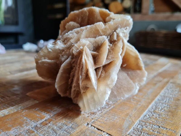 Woestijnroos geeft houvast en controle. De steen heeft fysiek een positieve werking op de ruggengraat, de hersenen en versterkt weefsel. Woestijnroos heeft een bevorderende werking op de vruchtbaarheid en borstvoeding. Hij maakt je jong, vitaal en vrolijk en versterkt de intuïtie.