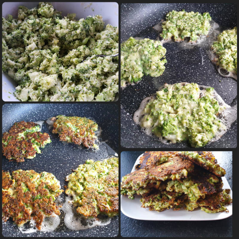 Hak de broccoli helemaal fijn en doe deze in een schaal, pers hier de 2 tenen knoflook doorheen en het eventuele uitje. Voeg de eieren, Parmezaanse kaas, bloem, zout en peper toe en roer alles goed door elkaar.