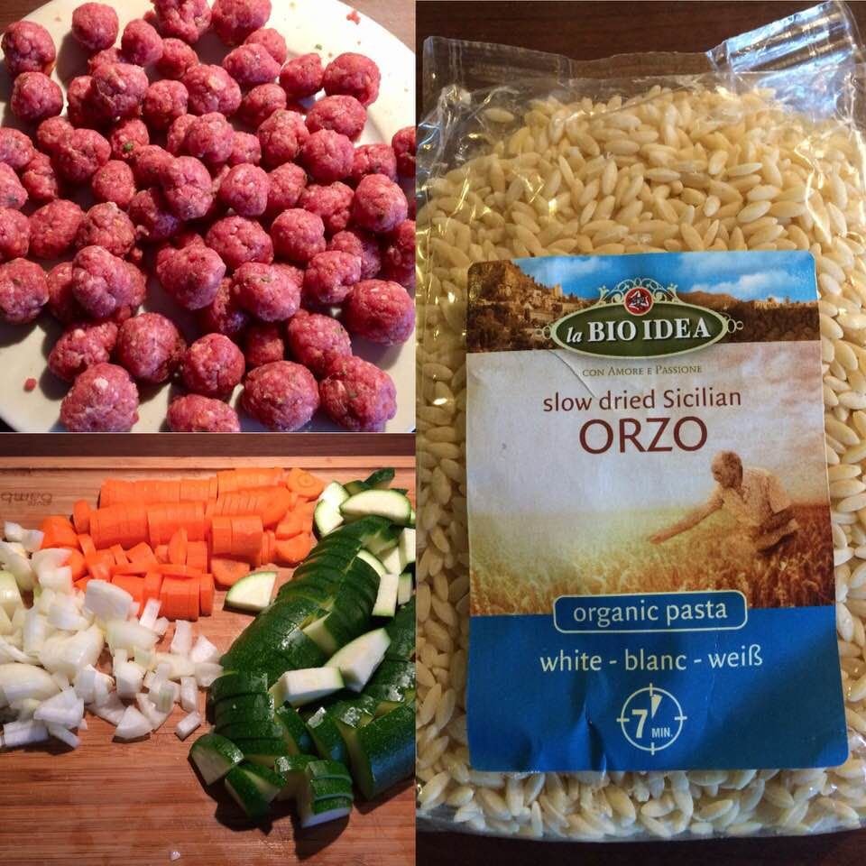 Doe nu de gehaktballetjes bij de tomaten groentesaus samen met de orzo en breng alles nogmaals goed aan de kook.